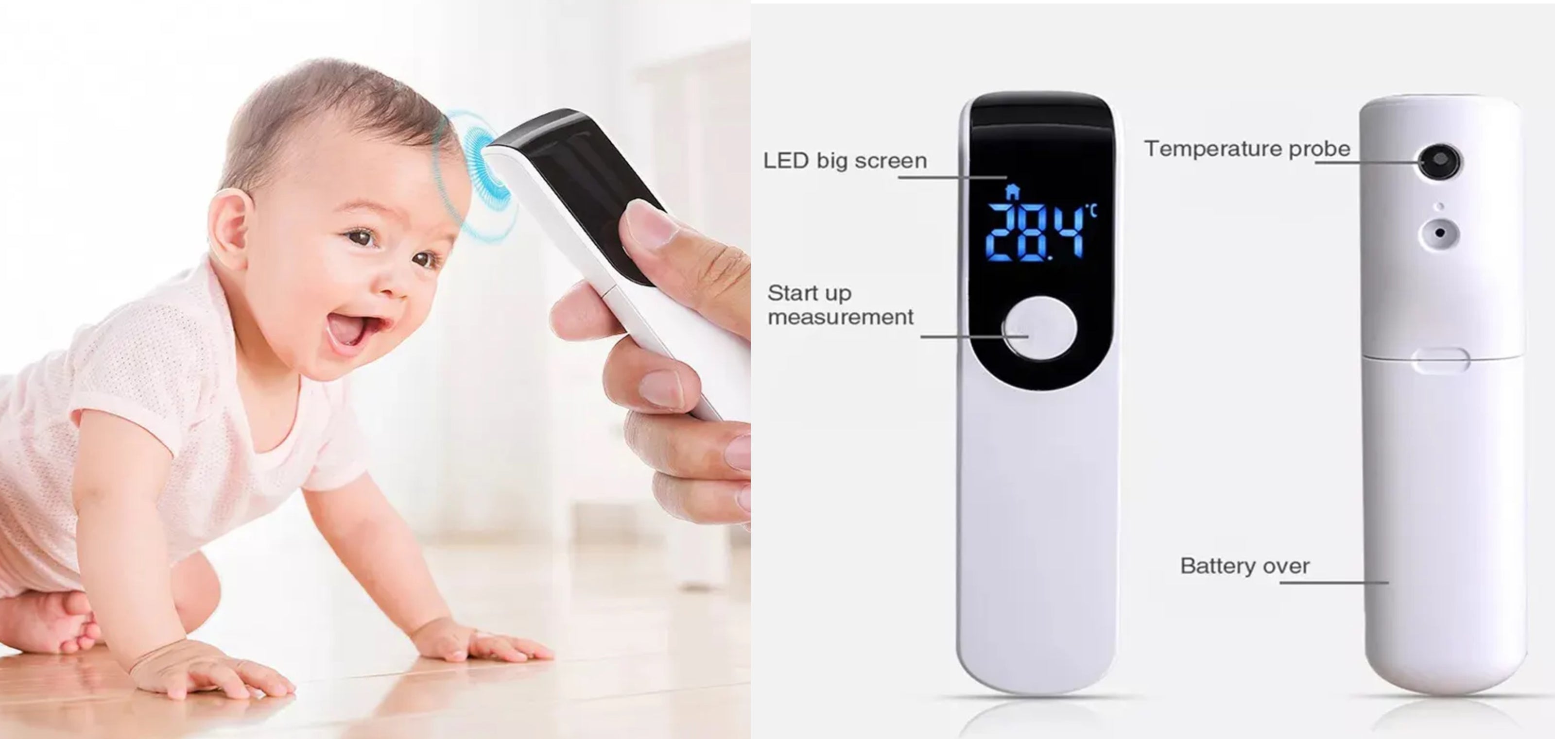 • Termómetro digital sin contacto. Super útil cuando duermen.